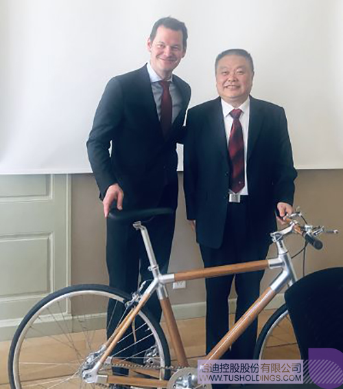 彭頃砡贈予中英聯(lián)合創(chuàng)新成果產(chǎn)品竹材料自行車