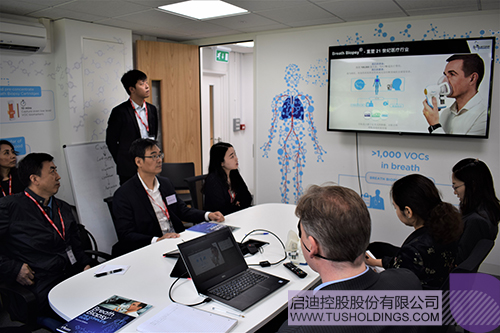 金勤獻(xiàn)院長一行與Owlstone、Biosceptre兩家劍橋的生命科技研發(fā)企業(yè)的負(fù)責(zé)人進(jìn)行交流,Owlstone是一家從事呼吸活檢技術(shù)全球領(lǐng)先的創(chuàng)新研發(fā)企業(yè),獲得多家知名風(fēng)險投資青睞,目前與上海仁濟(jì)醫(yī)院合作開展肺癌早期檢測的臨床試驗;Biosceptre專注于開發(fā)針對nfP2X 7的下一代癌癥治療方案,目前已完成臨床I期試驗,該公司在獲得啟迪投資后正積極探索落地中國的方案。隨后,金勤獻(xiàn)院長介紹了清華大學(xué)在醫(yī)學(xué)領(lǐng)域強(qiáng)大的學(xué)術(shù)資源與研發(fā)能力,同時介紹了全球健康藥物研發(fā)中心與荷塘資本,他表示清華大學(xué)已經(jīng)建立起具備全方位創(chuàng)新服務(wù)能力的成果轉(zhuǎn)化體系,期待與世界前沿的生命科技研發(fā)企業(yè)在聯(lián)合研發(fā)、市場拓展、股權(quán)投資等開展多層次合作。